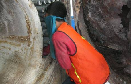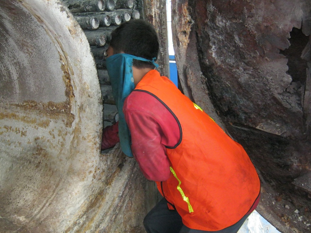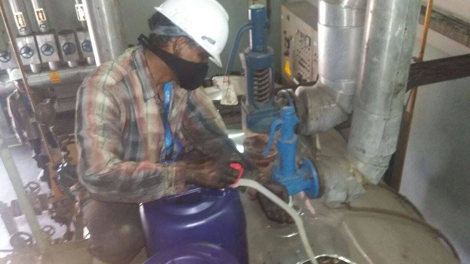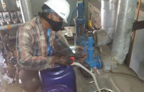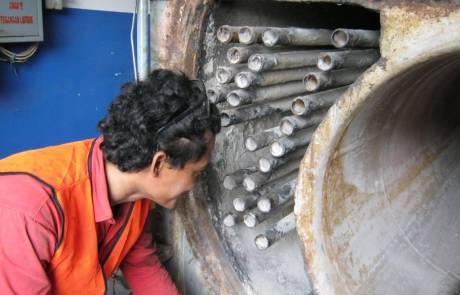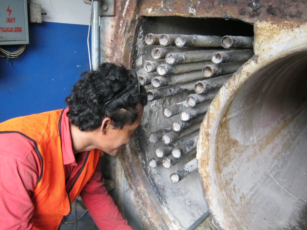 Pembersihan kerak pada pipa dan lorong api menggunakan chemical
